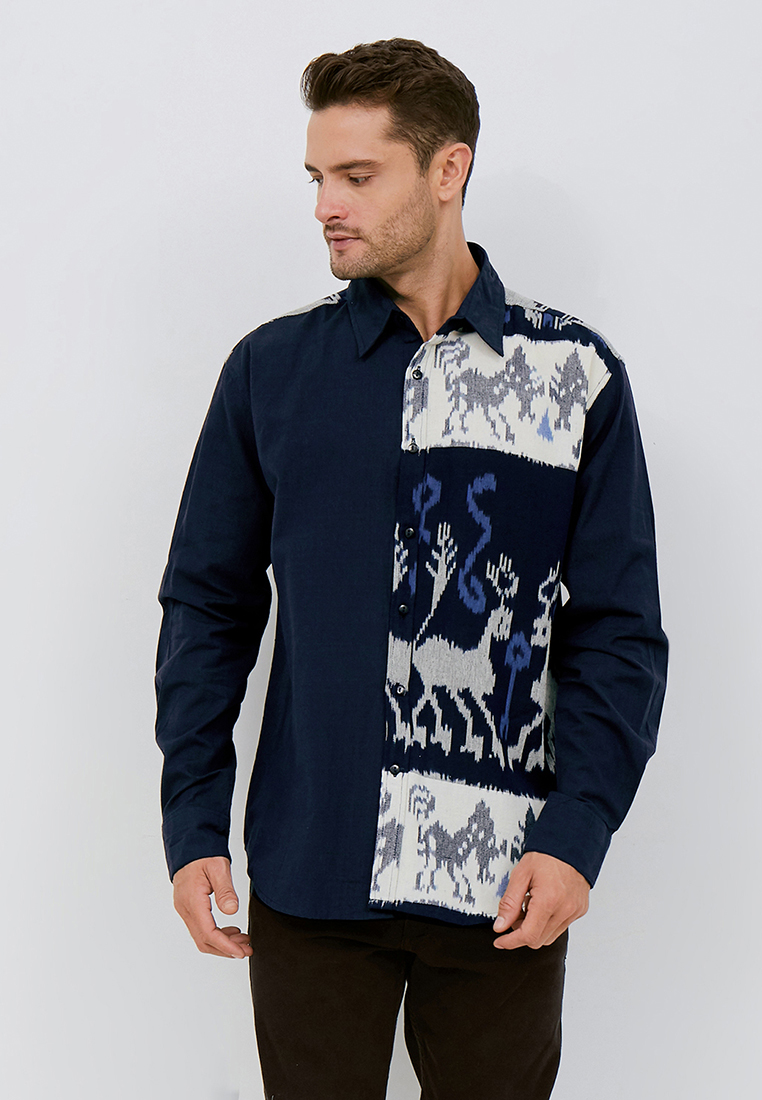 Kemeja Pria Kombinasi Tenun Lengan Panjang Ukuran M